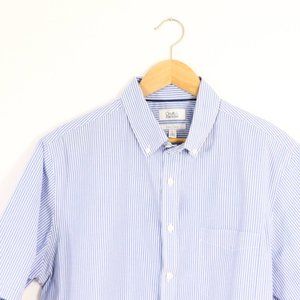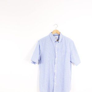 Mens Large Tall LT Button shirt - short sleeve summer casual blue stripes