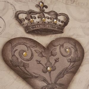 Distressed wall art for fans of The Crown. 9"×9". Canvas in wood frame. Bejeweled picture.