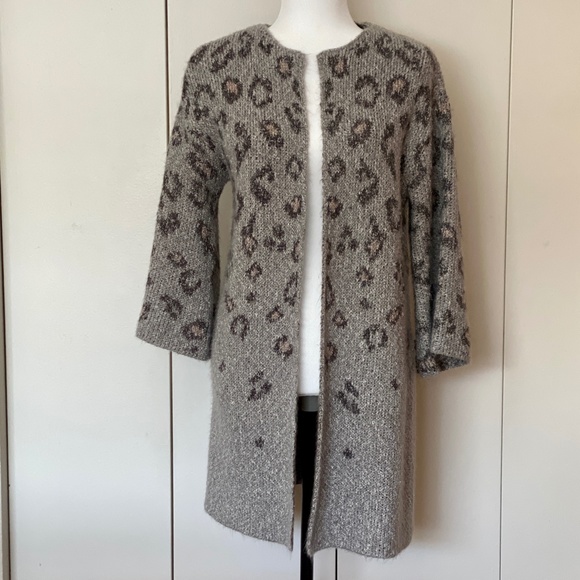 cupcakes and cashmere grey leopard intarsia cardigan