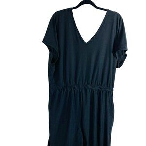 curvy, plus size black jumpsuit Deep V neckline size xl Sansara