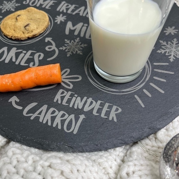 custom Engraved 12” Round Slate Santa Treat Tray Christmas Eve Tradition Decor