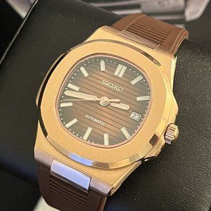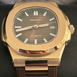 custom build seiko NH35 automatic movement build- rosegold "nautilus" mod