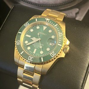 custom build seiko NH35 automatic movement - yellow gold hulk mod