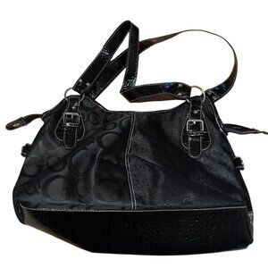 d - fusion Purse Black Faux Leather Medium Size Handbag with Logo Single Pocket