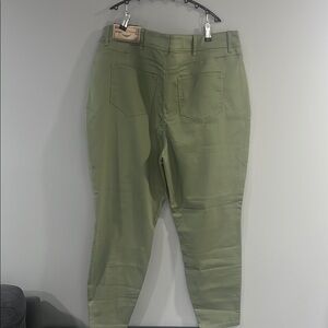 These d. jeans feature a chic green hue and a modern ankle-cropped design, perfect for a contemporary look. The jeans offer a relaxed fit with a slight taper towards the ankle, combining comfort with style. Ideal for casual outings, they bring a touch of utility-inspired fashion to your wardrobe. Size 22, 54 cm waist, 104 cm length