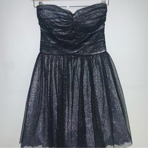 dELiA*s Dress Size 5/6 Black Silver Tulle Tutu Formal Cocktail Strapless Straps
