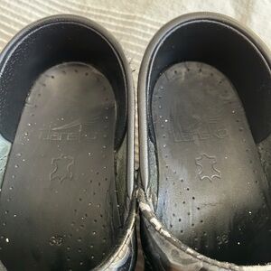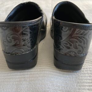dansko Professional Slip On Tooled Embossed Black Leather Clogs Size 36