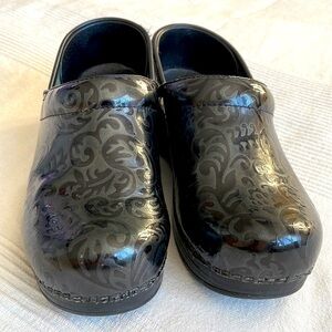 dansko Professional Slip On Tooled Embossed Black Leather Clogs Size 36