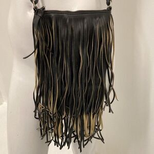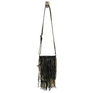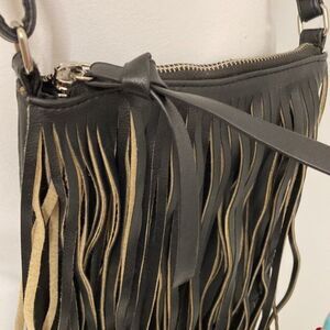deb & dave Black Fringe Vegan Faux Leather Crossbody Boho Purse