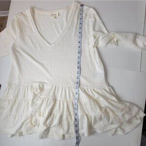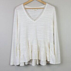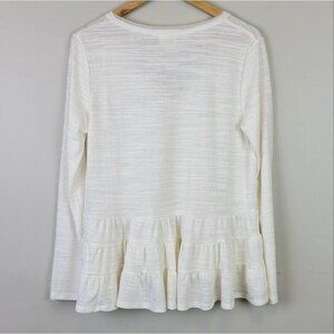 deletta Anthropologie Thea Peplum Tierd Ruffle Long Sleeve Top Ivory XS