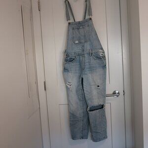 No wardrobe is complete without denim overalls. This utility-inspired pair features adjustable straps, a square neck, bib front, buttoned sides and multiple pockets for your on-the-go essentials.