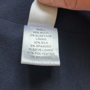 This Diane Von Furstenberg Long Wool Blend Double Ante Blazer is in good, pre-owned condition. The body is a wool and elastane blend with a silk and spandex lining. There are two rows of buttons on the front and five buttons on each cuff. Features signature holographic tag and slit at the back.  High quality construction with a retro vibe thanks to the long lines. Size 2 - please see pics for approximate measurements