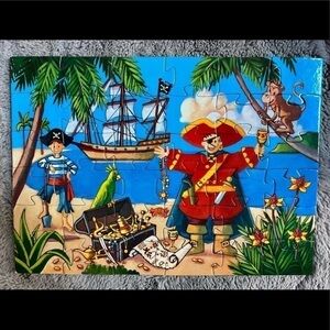 Comes in sturdy cardboard pirate shaped box! Dimensions when complete: 32x40 cm. All 36 pieces accounted for. Gently used by one child with tons of puzzles. Therefore, in great preloved condition. Smoke-free home!