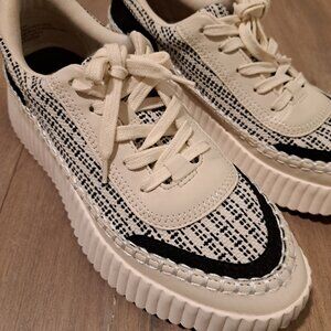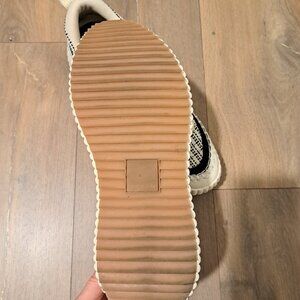 Platform sole with lace-up knit; synthetic and woven knit upper; rubber outsole; textile lining; 1.6" platform height; very light wear