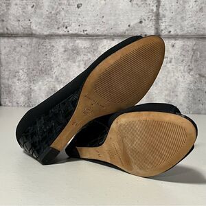 Excellent condition. Worn once indoor. Heel is black with specks of silver and crocodile pattern. Upper feels like PU (polyurethane) and soles are leather.