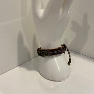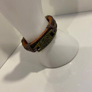 Item keywords: Gender neutral, handmade bracelet, leather cord, adjustable jewelry, boy girl charm, rustic design, brown leather, gold accent, casual bracelet, unisex accessory, unique jewelry, handcrafted piece, adjustable closure, boho style, stylish bracelet, Edgy, funky, wild, rock, Boho, bohemian, gypsy, Unisex