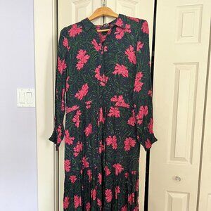 Midi dress, long sleeves with drawstring waist and tiered skirt
