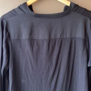 Middle section is polyester so it’s not as sheer as the rayon bottom