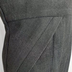 dynamite, XS, charcoal gray dress, in-sewn waist belt, V-neck and back, collar overlaps, capped shoulder sleeves.