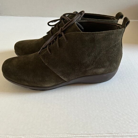 A pair of e24|7 green (khaki) colored suede ankle boots-Size 7, like new condition.