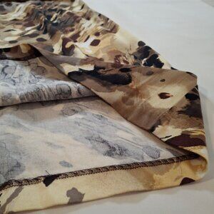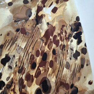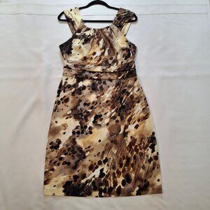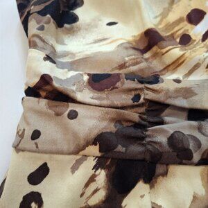 eConnected Apparel Brown Patterned Satin Cotton Halter Dress Size M Pleated Neckline Detail Ruched Waistband Gathered Straps Pencil Skirt Zip Back Custom Tailored