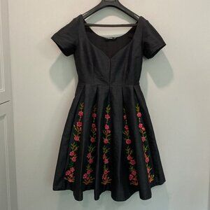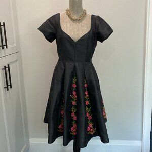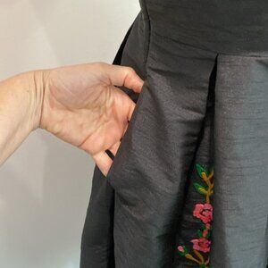 eShakti Floral Embroidery Dupioni Sweetheart Dress