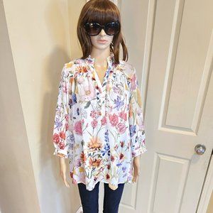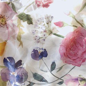 Polyester, woven georgette, digital print, sheer, soft drape, no stretch, lightweight
