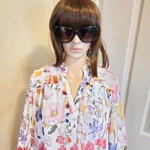2" above the bracelet length sleeves, single-button cuffs with ruffle frill trim.