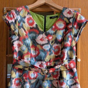 eShakti Multicolor Ikat Print Belted Fit & Flare Dress - Medium