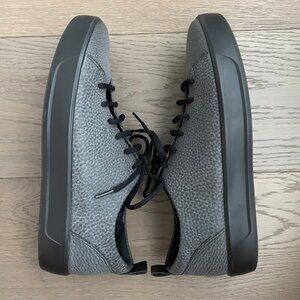 ecco Soft Vlll Fluidform Tech Extra Width Leather Lace Up Shoes Gray Black Sz 10