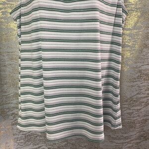 - Gorgeous white/green sleeveless glitter striped tank top with buttons closure at the back.soft and comfy to wear