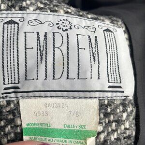Emblem vintage wool blend full length coat button down faux leather detail