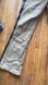 Stylish beige denim pants. Perfect for casual wear. Pleather detailing w/ tie.
