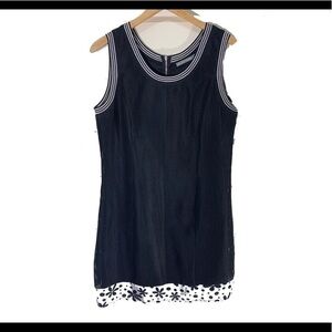 eric Alexandre Black Mesh Midi Dress Sleeveless Flower panel Hem 1/2 Back Zip