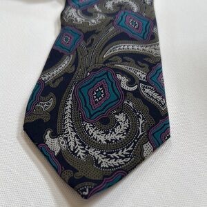 Elevate your style with this elegant paisley patterned tie. Featuring a sophisticated blend of black and blue, it's perfect for any formal occasion.