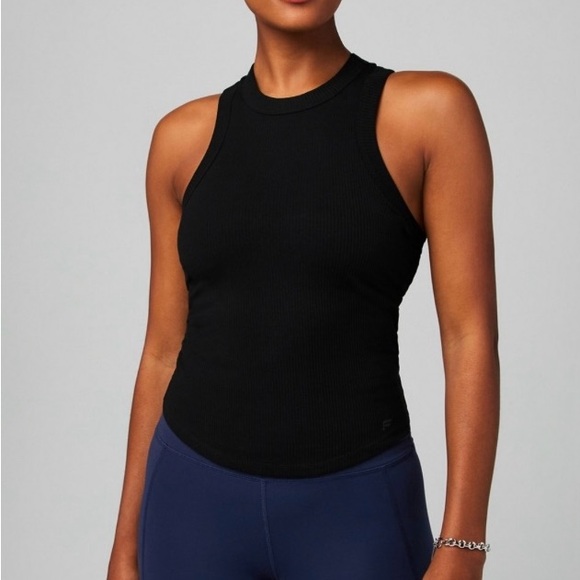 Elevate your style with this sleek black sleeveless top. Perfect for any occasion, it offers comfort and versatility. Rib tank