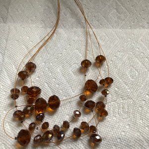 It is a beautiful 5-strand beaded necklace with brown beads, 18" long, and in very good pre-owned condition.