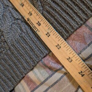 Formule Joyen Sweater, a gray knitted sleeveless cable-knit V-neck pullover with convenient pockets.
