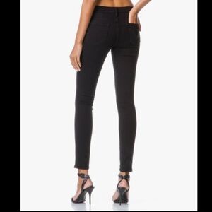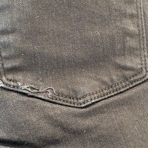 Frame denim black jeans. Size 25. FRAME's 'Le Skinny de Jeanne' pair is cut to flatter. Mid rise with super stretch. This style is designed to sit comfortably at your hips, ensuring a perfect look from all angles. Excellent condition. The only tiny flaw is the stitching on one of the back pockets is coming loose. Does not affect the look at all!