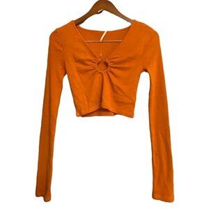 Free People Key To My Heart Ribbed Crop Top Metal Ring