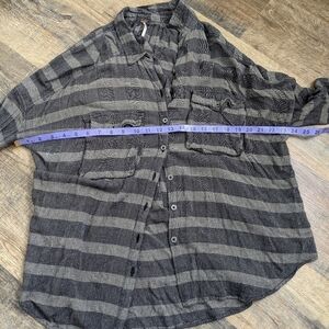 free People Plaid Striped Gray Top Shirt Button down Pockets
