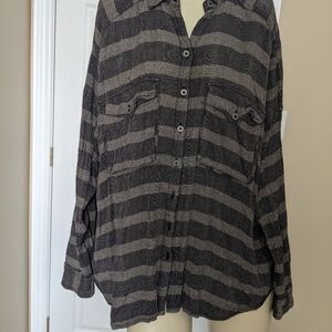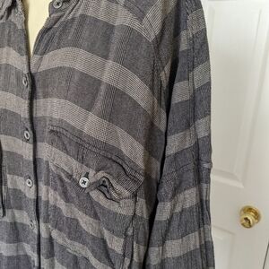 Free People Plaid striped Gray Top Shirt Button down Pockets
