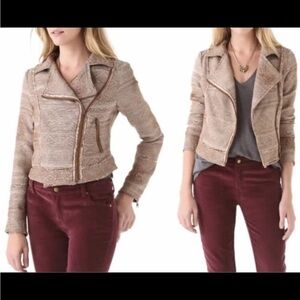 Just as cool as it is classic, this effortlessly edgy jacket is featured in a boxy, cropped silhouette with defined quilting and patching throughout for an added dimensional look.