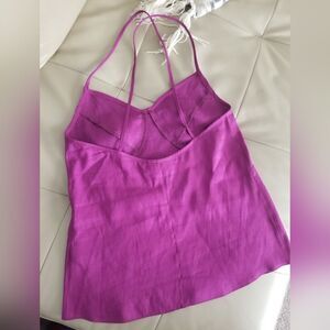 thin spaghetti straps tank top, crossover back, has a shine/sheen to it, good condition