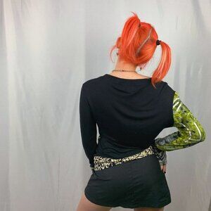fresh fx long sleeved green/black graphic jersey knit top size small