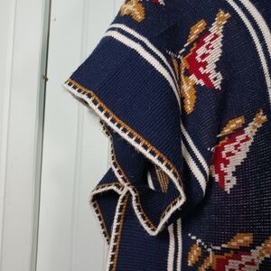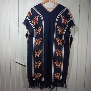 beautiful navy fringe Poncho Wrap Shawl with flower.