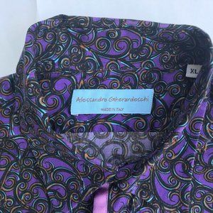 ALLESANDRO GHERARDESCHI funky purple, blue and orange pattern, button up shirt, 1 front pocket (you can't really see it on the picture) XL, really good condition, almost never worn.