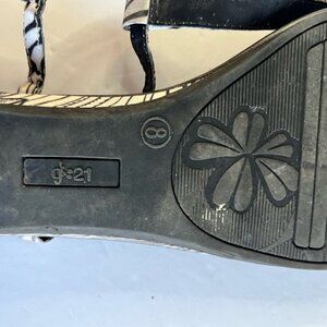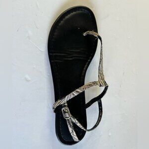 g:21 Black & White Strappy Flat Sandals - Size 8