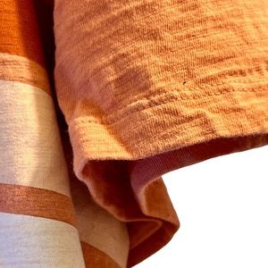 Orange GAP short-sleeved v-neck striped t-shirt with a pocket on the left chest.