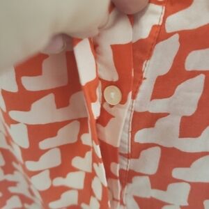 Gap blouse, sleeveless, flowy, light, pocket front, button front, deep neckline , orange with white hearts 100% rayon